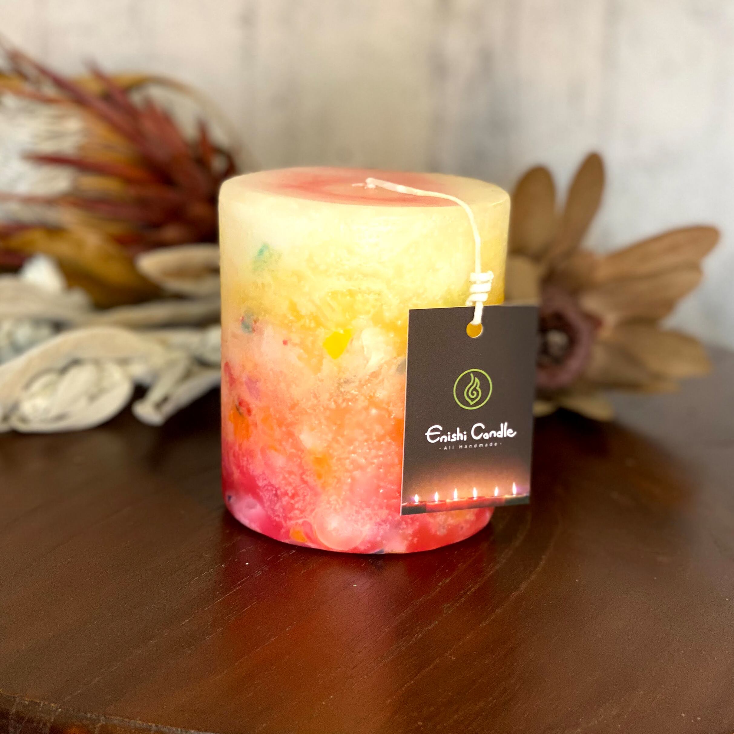 【燃焼時間約50時間】《陽 -よう-》美しすぎるグラデーションキャンドル「モノガタリ」レッドオレンジイエローグラデ